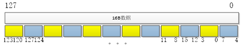 另外,網絡加解密結點會針對其TCP類型報文的數據部分根據硬件處理格式進行亂序處理,從而實現數據加密的功能。如圖3所示,硬件是將數據幀以128b(16B)的形式進行組織。