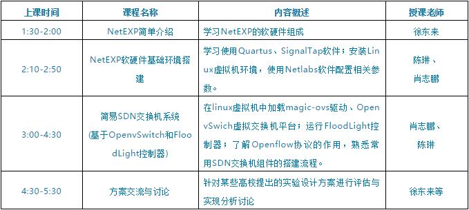 本次培訓(xùn)主要介紹了NetEXP軟硬件基礎(chǔ)環(huán)境的搭建,詳細(xì)剖析了三個(gè)不同層次的網(wǎng)絡(luò)教學(xué)案例,給大家展示了一個(gè)低成本、易部署的SDN交換機(jī)演示環(huán)境,講解了學(xué)生可以如何參與整個(gè)實(shí)驗(yàn)的過程。