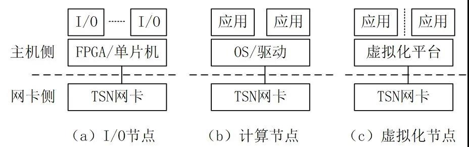 我們認為TSN網卡連接的端系統節點主要分為三類,即I/O節點、計算節點以及支持云計算的虛擬化節點,如圖1所示。