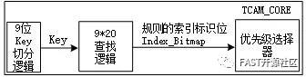 當前FAST開源項目中通用匹配引擎(GME)規則匹配能力有限,只支持64條規則長度為512比特的帶掩碼匹配功能,對需要大量規則匹配的環境,只能采用片外的TCAM器件。