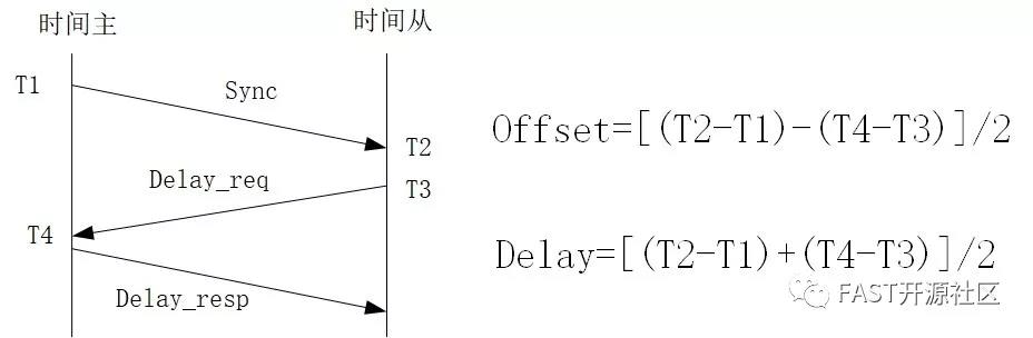 圖3 一次PTP協(xié)議時(shí)間同步的過程
